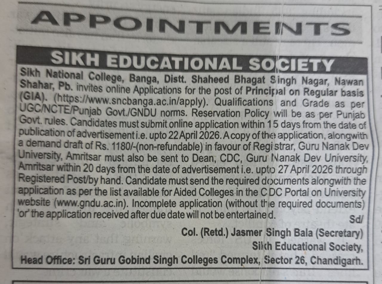 Apply for the post of Principal